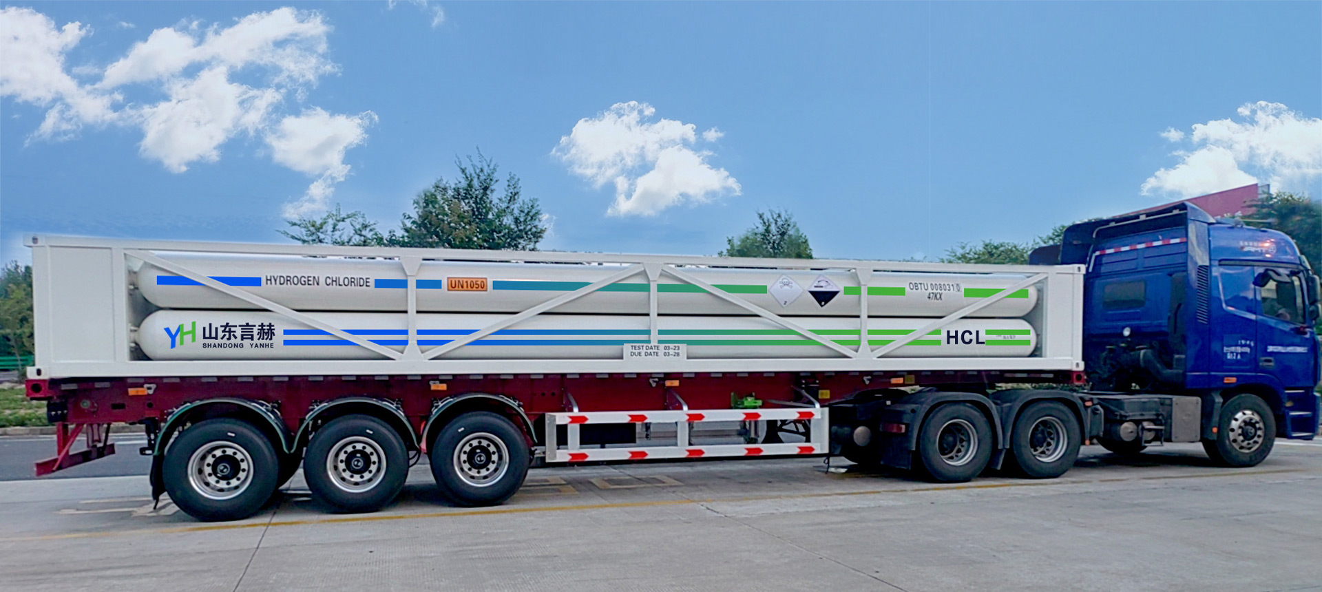 完备的包装体系:提供多种规格的氯化氢专用钢瓶:2L、4L、8L、10L、47L、470L、880L、以及20尺、40尺国际标准管束车,